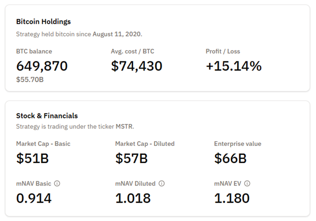 หมายถึง ราคาหุ้นของบริษัท (Strategy) มีมูลค่าต่ำกว่ามูลค่า Bitcoin ทั้งหมดที่บริษัทถืออยู่