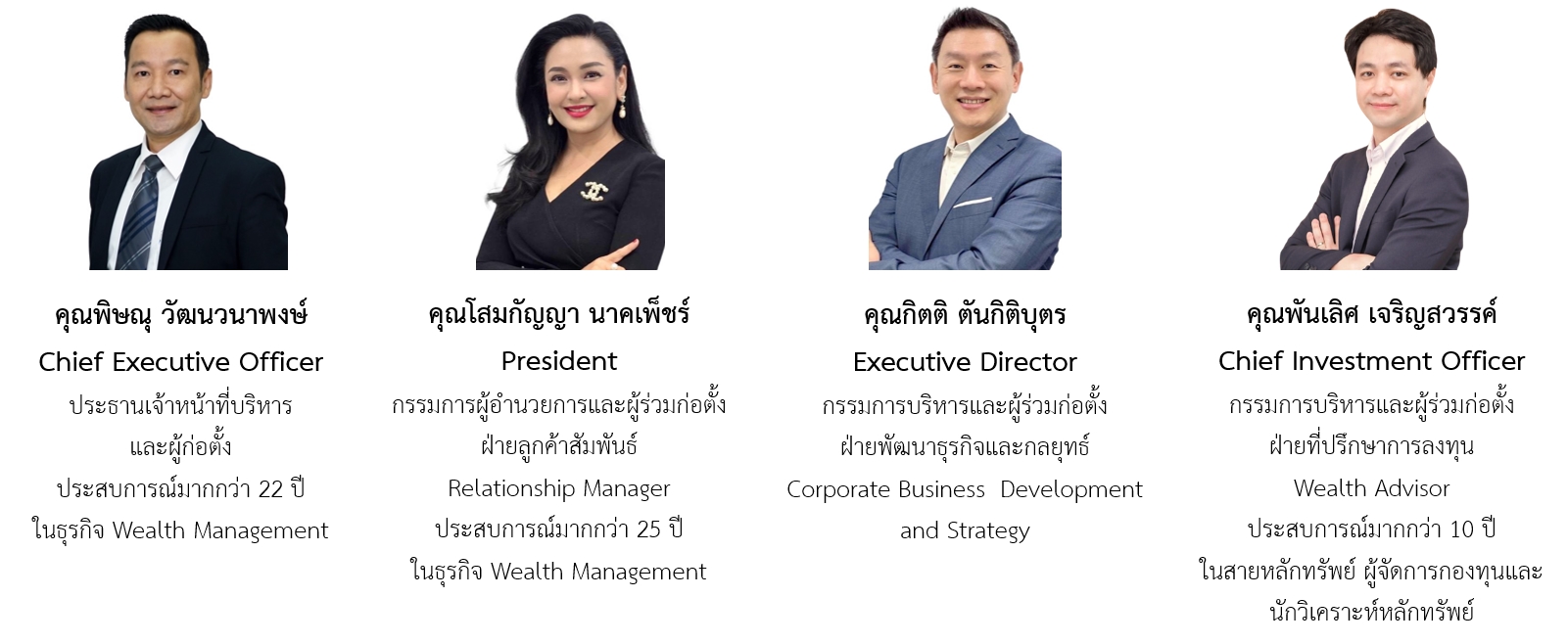 บริษัทมีบุคลากรฝ่ายที่ปรึกษาการลงทุนที่มีใบอนุญาตของผู้ประกอบวิชาชีพผู้จัดการกองทุน, นักวิเคราะห์หลักทรัพย์, ผู้แนะนำการลงทุน (Invertment Consultant : IC) และใบอนุญาตของผู้ประกอบวิชาชีพผู้วางแผนการลงทุน (Investment Planner : IP) ซึ่งเป็นบุคลากรที่มีประสบการณ์การทำงานในธุรกิจที่ปรึกษาการลงทุนการวางแผนการเงินจากสถาบันการเงินชั้นนำและประสบการณ์ในการวิเคราะห์การลงทุน