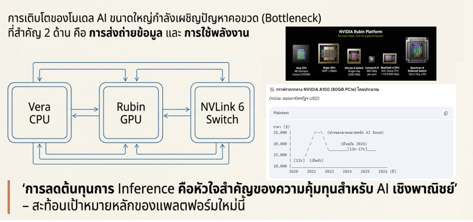 รากฐานการประมวลผล (AI Infrastructure): หัวใจสำคัญคือการก้าวข้ามขีดจำกัดด้านพลังงานและการส่งข้อมูล นำโดย Nvidia “Vera Rubin” ที่เพิ่มประสิทธิภาพการเทรน AI ขึ้น 5 เท่า และโมเดล Cosmos ที่ใช้ข้อมูลสังเคราะห์สร้าง Industrial Metaverse เพื่อฝึกฝนระบบอัตโนมัติ ขณะที่ตลาด AI PC เกิดการแข่งขันรุนแรงระหว่าง Intel (18A), AMD และ Qualcomm เพื่อแย่งชิงการเป็นศูนย์กลางการประมวลผลที่ขอบเครือข่าย (Edge Computing)