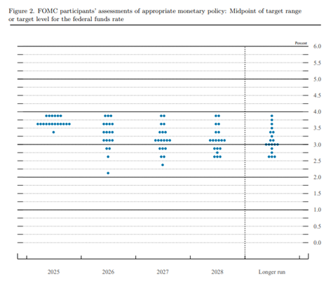 ด้านภาพเศรษฐกิจ Fed ปรับคาดการณ์ GDP ดีขึ้น เงินเฟ้อทยอยลดลง และ Dot Plot ชี้ว่าปีหน้ามีแนวโน้มลดดอกเบี้ยเพียงครั้งเดียว ต่างจากตลาดที่ยังเชื่อว่าจะลด 2 ครั้ง ส่วนพาวเวลส่งสัญญาณกลาง ๆ ต่อเศรษฐกิจและย้ำการตัดสินใจตามข้อมูล โดยเปิดทางลดดอกเบี้ย “หนึ่งหรือสองครั้งเล็ก ๆ” หากตลาดแรงงานอ่อนแรง พร้อมยอมรับว่านี่เป็นช่วงที่ต้องบริหารความเสี่ยงทั้งเงินเฟ้อขาขึ้นและการจ้างงานขาลงอย่างระมัดระวัง
